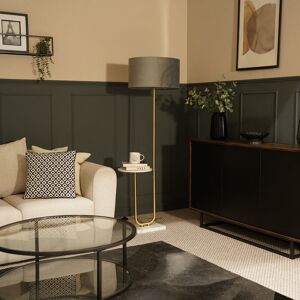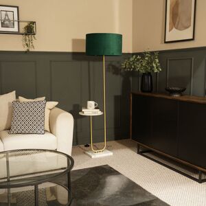 Add a contemporary element to your décor with this dual function floor lamp. Featuring a curved metal stem in a brushed chrome finish with a solid marble table which is ideal for displaying ornaments, pictures and other decorative items. Complete with a large velvet lampshade in a range of colour options to suit all decors. This lamp can be placed into the corner of the room providing you a large space saving solution whilst also making it look attractive and decorative. This practical but stylish light has a braided flex with an in-line on/off foot switch for easy use. This lamp is easy to assemble, making it simple to enjoy your new lighting addition. Fairmont Park Base Finish: Black, Bulb Included: Yes, Shade Colour: Natural
