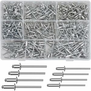 MATERIAL – Aluminum handle and steel frame. Acid and corrosion resistant. Smooth surface, sturdy, yet lightweight, easy to install and fits perfectly with the riveter. 8 SIZES – 60*3.2x6mm, 60*3.2x8mm, 50*3.2x10mm, 50*3.2x12mm, 50*4x6mm, 50*4x8mm, 50*4x10mm, 50*4x12mm. PRODUCT FEATURES – Blind rivets feature a mandrel that allows for a jam at the blind end of the rivet and expansion of the rivet shank during adjustment to connect components in an assembly. /p> PACKAGE - 420 pieces in 8 sizes, packed in a sturdy transparent plastic case, easy to carry and dispose. In addition, the box can be used as a storage box. WIDE APPLICATIONS: Mechanical and electrical, shipbuilding, carpentry, automotive, household appliances and other industries. luckymeet
