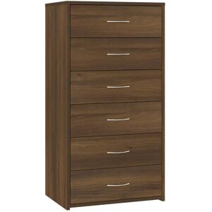 This sideboard, featuring a minimalist design, will make a practical and highly decorative addition to your home! Premium material: The engineered wood is of exceptional quality with smooth surface and also features strength, stability and resistance to moisture. More storage space: The cabinet offers large storage space with 6 drawers. You can keep your books, multimedia appliances and other personal belongings organised and within reach. Displaying function: The sturdy tabletop of this cupboard is ideal for displaying decorative objects, photo frames or potted plants. Warning: In order to prevent overturning, this product must be used with the wall attachment device provided. Colour: Brown oak Material: Engineered wood Overall dimensions: 50 x 34 x 96 cm (W x D x H) 6 Smooth running drawers with handles Assembly required: Yes Legal Documents: More details about preventing your furniture from tipping over can be found here SKU: 815365 EU responsible party Haba Trading B.V. Mary