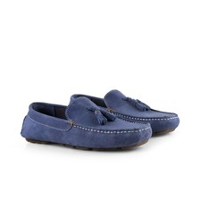 The Jackson Mocassin Suede Leather Tassel Mens Driving Loafers is an elegant and versatile shoe, meticulously crafted from soft, premium suede leather. Perfect for elevating both casual and smart-casual outfits, these mens loafers feature a classic tassel detail and a timeless slip-on silhouette. Designed for all-day comfort, the loafer has a lightweight, flexible sole, making it ideal for driving or everyday wear. The cushioned insole and refined construction ensure a comfortable fit, while the suede upper offers a sophisticated texture, providing both durability and style. Silver Street London Men's Jackson Suede Leather Driving Moccasin Tassel Loafers in Blue Size: 7