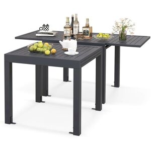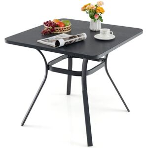 This solid metal patio dining table will perfectly elevate your outdoor dining experience. Boasting a 80 x 80cm tabletop, this square table comfortably seats 4, creating the perfect setting for family meals or friend gatherings. Constructed with a sturdy metal frame, the table assures unwavering stability. The wood-like textured tabletop and rounded corners combine safety with sophistication, making it an attractive addition to any outdoor space. All in all, this versatile table will enhance your patio decor while providing a steadfast dining space. Make every meal memorable with this premium dining table that blends functionality with elegance for the ultimate dining experience. Costway 80cm Patio Dining Table Outdoor Metal Square Table with 4 Curved Legs in Grey