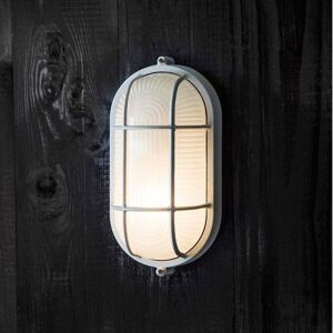 Garden Trading Chatham Small Bulk Head Oval Mains Outdoor Garden Wall Porch Light This popular light's cool contemporary styling has a distinct maritime feel. The stylish Chatham bulk head light is a great way to add a modern twist to your outdoor lighting Completely weatherproof it's IP44 rated for outdoor use. Will look great in a porch, outbuilding or on your garden wall. It's also perfect for illuminating garages and potting sheds. This modern take on the classic wall mounted light will also work well inside alcoves, in hallways or in your kitchen creating a sense of effortless style. Completely weatherproof, the Aluminium body has a Sandblasted finish with a silver shimmer, bringing a unique touch to its appearance. The ribbed glass shade allows the bulb to shine through whilst protecting it from the elements.
