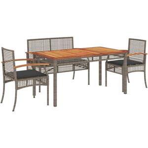 This garden dining set is a great choice for al fresco dining or just relaxing in the garden, backyard, or on the patio. Durable material: PE rattan, also known as poly rattan, is a strong, low-maintenance synthetic material that looks like natural rattan. It's lightweight, easy to clean, and commonly used for outdoor furniture due to its durability and weather-resistant properties. Comfortable seat experience: This outdoor furniture, complete with thickly padded cushions, offers a comfortable seating experience. Removable and washable cover: These seat cushions feature removable covers for easy washing and maintenance. Stable and easy-to-clean tabletop: This garden table has an acacia wood top that is sturdy, durable, and easy to clean with a damp cloth. Robust and stable frame: The powder-coated steel frame ensures that the garden furniture is strong and stable for daily outdoor use. Good to know: To make sure your outdoor furniture stays beautiful, we recommend protecting it with a
