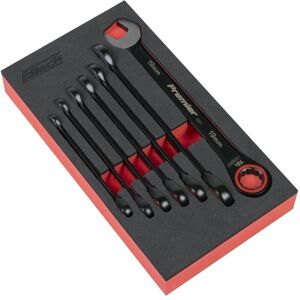 • Drop-forged Chrome Vanadium steel spanners. • Hardened and tempered with a black electrodeposition finish for corrosion resistance. • 15° Offset open-end and WallDrive® ring combination with long slim shafts. • Sizes: 8, 9, 10, 11, 12, 13, 14, 15, 16, 17, 18, 19mm. Sealey 12 Piece Black Series Spanner Set Drop-forged Chrome Vanadium steel spanners. Hardened and tempered with a black electrodeposition finish for corrosion resistance. 15° Offset open-end and WallDrive® ring combination with long slim shafts. Supplied in an EVA storage tray. Tray Size (W x D x H): 190 x 280 x 30mm. Features & Benefits: • Drop-forged Chrome Vanadium steel spanners. • Hardened and tempered with a black electrodeposition finish for corrosion resistance. • 15° Offset open-end and WallDrive® ring combination with long slim shafts. • Sizes: 8, 9, 10, 11, 12, 13, 14, 15, 16, 17, 18, 19mm. • Supplied in an EVA storage tray. • Tray Size (W x D x H): 190 x 280 x 30mm. • Lifetime guarantee*. • Model No. AK63263B