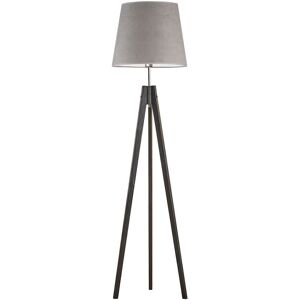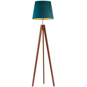 The floor lamp will definitely be an interesting decorative element. The three-legged frame resembles a camera tripod. The wooden tripod is decorated with a cylinder-shaped lampshade covered with velour fabric pleasant to the touch. The velvety material perfectly emphasizes the light coming from inside. The lampshade is available with a white or gold interior. Colour parameters allow us to adjust the stylish floor lamp to any interior. The modern luminaire has a functional footswitch that facilitates everyday use. George Oliver Shade Colour: Navy, Base Finish: Grey