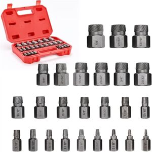High-quality -MO Steel: stripped screw extractor made of heat-treated and high-quality chromium molybdenum steel. Tough and not easily damaged. Left-hand spiral design offers extra gripping power and faster threading. Easy to Use: Easy out screw extractor set suitable for both power tools and hand tools,high density spiral design helps faster removing broken screws, bolts, nuts, studs, fittings, threaded pipes and pins. Multiple Size To Meet All Your Need: 25pcs bolt extractor kit including:1In-7/8In ,1In-27/32In,1In-13/16In,7/8In-25/32In,7/8In-3/4In,7/8In-23/32In, 7/8'-11/16In,7/8In-21/32In,3/4In-5/8In,3/4In-19/32In,3/4In-9/16In,3/4In-17/32In,5/8In-1/2In,5/8In-15/32In,5/8In-7/16In,1/2In-13/32In,1/2In-3/8In,1/2In-11/32In,1/2In-5/16In,1/2In-9/32In,1/2In-1/4In,1/2In-7/32In,1/2In-3/16In,1/2In-5/32In,1/2In-1/8In. High-visibility laser-etched size for quick identification. Stamping Size: All the size is engraved on the screw extractor socket for easy identification, chamfered bit ensures a