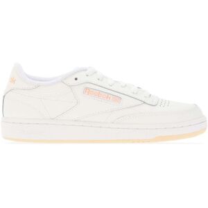 Womens Reebok Classics Club C 85 Vegan Trainers in white.- Textile upper.- Lace up fastening.- Panelled design.- Archive logo and windowbox. - Side stripe detailing. - Logo patch to the side. - Branded heel counter.- Logo at the sole.- Logo patch at the tongue.- Perforated toebox.- Round toe.- Flat rubber sole.- Ref.: 100033094