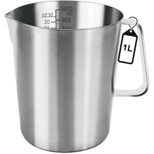 Premium 304 Stainless Steel: Crafted from high-quality 304 stainless steel, also known as 18/8, this measuring jug is rust-proof, wear-resistant, and . Its robust construction ensures it is drop-proof, making it ideal for use in kitchens, bars, and industrial settings. Precision and Craftsmanship: Designed as a single piece, this jug features no leaks or cracks. It includes a wide, comfortable handle for stable grip and precise dual graduations in ounces and millilitres. The non-slip grooved base enhances stability, preventing during use. Dishwasher Safe for Easy Cleaning: The smooth interior of this 1-liter measuring cup simplifies cleaning. It's dishwasher safe, allowing for hassle-free maintenance without the worry of damage, ensuring and hygiene. Heat Resistant and Versatile: Suitable for direct heating on induction hobs or open flames, this measuring cup does not require changing utensils. Its versatility extends to settings including home kitchens, restaurants, and cafes, making