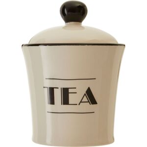 Organize your kitchen in style with the Tea Canister from Interiors By Premier, a perfect blend of functionality and aesthetic appeal. Crafted from strong dolomite, this canister is built to last, offering a robust and durable solution for your kitchen storage needs. Its smooth cream finish contrasts beautifully with the bold black tea wording, adding a touch of sophistication to your countertops. The canister's wide rim features a decorative black trim that enhances its visual appeal while complementing the knob handle on the domed lid. This thoughtful design ensures that the canister is as practical as it is stylish, making it easy to access and securely store your tea leaves or tea bags. Measuring H15 x D11 x W11 cm and weighing 0.42 kg, this kitchen storage container is compact yet spacious enough to accommodate a generous amount of tea. Pair it with the matching coffee and sugar canisters from the range to create a cohesive and organized kitchen setup. This versatile canister is not only ideal for tea but also works well as a storage solution for other dry goods. Its art deco-inspired design makes it a standout piece that blends seamlessly with both modern and traditional kitchen decor. For maintenance, it is recommended to wash the canister before first use with warm soapy water. The lid should not be submerged, as this helps to preserve its decorative trim and knob handle. Hand washing is ideal to maintain the integrity of the kitchen storage container over time.