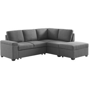 Product benefits Convertible sofa Footstool with storage box Armrest with storage Discover our 3-seater corner sofa bed. Its ingenious, modern design adapts to your needs, adding a contemporary touch to your space. Convertible in an instant, it welcomes your guests with ease. The major advantage? The footstool included, with its clever storage compartment thanks to its system of jacks, ideal for plaids and accessories. The armrests, fitted with the same system, offer extra space for magazines or remote controls. An elegant solution for keeping your space tidy while keeping the essentials close at hand. Practical, stylish, uncompromising! Seat padding: 6cm recycled foam (50kg/m3) + 3cm new foam (28kg/m3) Back padding: 30% crushed foam + 70% polyester fibres Arm padding: New foam (32kg/m3) Cushion filling: Polyester fibres 4 castors Sofa: W 223 x D 83 / 205 x H 89cm Bed: W 163.5 x D 104cm Seat: W 163.5 x D 52cm Seat height: 47cm Arm height: 58.5cm Cushions: W 62x5 x H 45cm / W 40.5 x H
