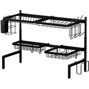 Description Keep your kitchen neat, organised and space-efficient with this Adjustable Over Sink Dish Drying Rack – the perfect all-in-one solution for drying dishes, storing utensils, and decluttering your countertops. Made from high-quality steel, this rust-resistant dish drainer fits neatly over most kitchen sinks, making the most of vertical space without taking up valuable worktop room. With an adjustable length from 66cm (26in) to 85cm (33.5in) and a customisable height from 55cm (21.7in) to 59cm (23.2in), this dish drying rack can be tailored to your kitchen layout. Whether you have a single or double sink, this freestanding dish rack offers flexibility and stability. This multifunctional over sink dish rack features multiple compartments for plates, bowls, cutlery, cups, knives, chopping boards, and even cleaning supplies – all in one compact and easy-to-access unit. Ideal for small kitchens, rented flats, caravans, and busy households. Key Features Adjustable Size – Fits a