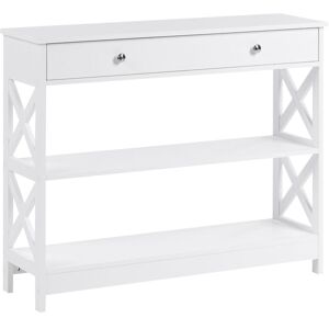 Contemporary Console Table. A decorative, classic and functional sideboard in a modern design that easily blends with interiors in traditional, Scandinavian and minimalist decor. Made from high-quality materials, the piece includes a drawer which provides ample storage space for all your magazines, accessories and other bits and pieces. Display your favourite plants, candles, and other decor pieces on featured shelves to accentuate both the sideboard and your room. Details: Product Type: Console Table Style: Traditional General Color: White Material Type: Wood Main Material: MDF Frame Material: Engineered Wood Legs material: Engineered Wood Top Material: Engineered Wood Drawers: Yes Finish: Painted Number of Drawers: 1 Shelves: Yes Dimensions: Depth: 30 cm Width: 100 cm Height: 80 cm Weight: 20 kg Top Weight Capacity: 10 kg Offer Includes: 1 x Console Table Key Features: Featuring Different Types of Storage Space, Perfect for Both a Bedroom and a Living Room, Minimalistic,