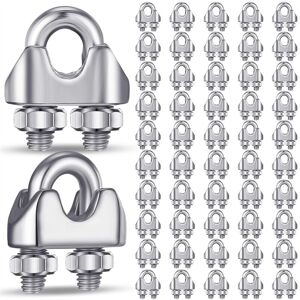 Package contains 50pcs 1/8inch M3 stainless steel cable clips, each measures approximately L: 17mm x W: 8.5mm x H: 20mm Made of high-quality 304 stainless steel material, exquisite workmanship, solid structure, not easy to break or deform, excellent workmanship, corrosion-resistant and . The metal wire clip is suitable for 1/16inch-1/8inch diameter wire rope or cable, very suitable for fixing cables and ropes, bringing you a pleasant using experience Our cable clamps are U-shaped design, each rope clamp includes a U-shaped bolt, a saddle and 2 nuts, insert the two ends of the wire to be fixed into the clamp seat and tighten the nut, easy to install and use Rope clips are used to help hold wire rope or cables in place, perfect for tightening up ropes, wires and cables, rigging, temporary fencing systems, securing loads, hanging banners or flags and signs, stage lighting safety ropes, tent ropes, clotheslines , outdoor hanging lights, and anything else involving cables Colour:Silver