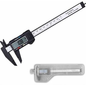 Made of strong, lightweight and durable plastic carbon fiber composite material (color is black) Linear capacitance measuring system. Bi-directional measurement, internal and external measuring range 0-150 mm (0-6 inches) Zero adjustment in any position. Comes with LCD display in inches or millimeters Ideal tool for a variety of industrial and automotive applications