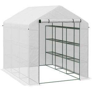 This greenhouse is the perfect item for gardening hobbyists, green fingers or someone who just wants to start his/her own growing. It will surely extend your plants growing season wherever you are, and it will let you grow your own plants and vegetables in a easier way. Do not hesitate to take it home, and start to create your own crops all the way to your dinner plate!Features:Reinforced 140 g/m² green PE grid fabric ensures the cover durableAnti-UV, translucent4-tier shelf on each side for plants display and storageDark green powder coated Ø 16mm steel tube, hardy and durableFull ground bar and support bar on both sides, stable and sturdyDiagonal storm bracing bars inside make the whole configuration more firm and everlastingRemovable cover with 2 front zips for easy ventilationAt bottom, there is 10cm redundant cover for that soil can press on it for extra stabilityOffer a usable and 9.5 cubic meters vacancy and spaceEasy assembly and easy to clean
