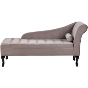 Elegant Storage Chaise Lounge. This stunning chaise lounge is a blend of style and functionality. Crafted in a uniquely glamorous design with a beautifully tufted seat, it blends perfectly with any vintage, eclectic or traditional interior. Thanks to soft to the touch velvet upholstery and a bolster cushion, it is ideal for reading a book in a calm and relaxing environment. The practical storage space underneath the seat can be used to store blankets, or cushions. Details: Product Type: Chaise Lounge Style: Retro General Color: Beige, Black Shade: Light Beige Material Type: Fabric Main Material: Velvet Additional Material: Plywood Filling Material: Foam Material Composition: 100% Polyester Arm Style: Recessed Orientation: Right Hand Pattern: Solid Reclining: No Seat Construction: Plywood Seat Foam Density: 30 kg/m3 Dimensions: Armrests Height: 71 cm Depth: 62 cm Seat Thickness: 9 cm Seat Height: 40 cm Width: 145 cm Height: 71 cm Seating Surface: 122x56 cm Weight: 32 kg Weight
