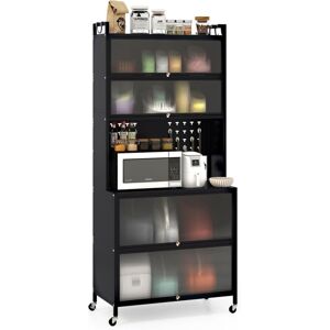 Transform the way you organize with our 6-tier kitchen pantry cabinet! Featuring a top open shelf, spacious countertop, 4 storage compartments, 4 side metal hooks and a pegboard with 10 hooks, the buffet cabinet with hutch offers multiple storage options catering to different storage needs. Its translucent flip doors not only enhance visibility and access but are removable for your convenience. The cabinet can be easily repositioned as needed with 4 universal casters or adjustable foot pads. Constructed from sturdy carbon steel, the kitchen storage cabinet offers lasting durability and strong support. An anti-toppling device further enhances stability, making it a reliable and safe addition to kitchens, dining rooms, living rooms, or home offices. Bullet Point: Organize with Ease: Featuring a top open shelf, spacious countertop, and 4 storage compartments, our 6-tier pantry cabinet offers exceptional organization for all your kitchen essentials. 4 metal hooks and a pegboard with 10