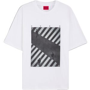 With a laid-back fit and statement artwork, this HUGO Menswear T-shirt is just the thing for high-impact casuals. Crafted in soft cotton. This product contains at least 80% better raw materials.This piece is made with at least 80% cotton derived from regenerative agriculture.Regenerative agriculture prioritises the preservation and restoration of natural environments, aiming to enhancebiodiversity, maintain water quality, and improve soil health.Features:- Fit length: Standard length- Fit: Relaxed fit- Neckline: Crew neck- Sleeve length: Short sleevesSpecifications:- Material: Lining: 100% Polyester, Quality: 100% Cotton