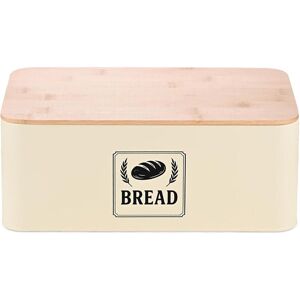 This bread bin is ideal for storing bread and rolls. Thanks to its sturdy metal housing and tightly fitting bamboo lid, your baked goods are protected from drying out – keeping bread, rolls, toast, and more fresh for longer. The decorative retro design with "Bread" lettering also makes the bread storage container a stylish focal point in your kitchen. Bread bin in detail - Overall dimensions H x W x D: approx. 13.5 x 33 x 19 cm - Internal dimensions H x W x D: approx. 12.5 x 32.5 x 18 cm - Wall thickness: approx. 0.4 mm - Weight: approx. 1 kg - Material: iron, bamboo - Available in different colours Bread storage box with bamboo lid - Ideal for storing bread, rolls, and pastries in the kitchen - Effectively protects baked goods from drying out and external influences - Compact, rectangular design saves space on the countertop - Stylish retro look with decorative "Bread" print as a feature - Durable bread box thanks to robust metal housing and bamboo lid Included in Delivery - 1x bread