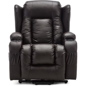 The ultimate choice in comfort, style, and functionality, this electric recliner offers massage, heat, reclining, and a rising ability to help you stand up. This is the perfect cinema chair with soft padding and full lumbar support. The electric recliner is upholstered in super-soft bonded leather and would suit most living areas and studies. You can enjoy the gently warming, heated backrest on a cold winter's day. It is simple to operate, relax, and recline to watch your favorite film, sports game, or play a computer game. With side pockets for controllers and handy drink holders, you will want to stay on this recliner once you're fully reclined and ready for a snooze. Ebern Designs Upholstery Colour: Black, Reclining Type: Dual Motor Lift Assist