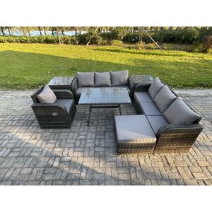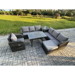 This 7 pieces deluxe Garden furniture set adds decoration to your courtyard, deck, backyard, porch, and even swimming pool, using high quality PE rattan and durable galvanized steel construction, which can withstand the bad weather in the UK and can be easily combined into different configurations according to your needs at any time. Set Dimensions: 1 x Side coffee table 65L x 65W x 66H cm 2 x Big footstool 65L x 65W x 34H cm 2 x Reclining Chairs: 74L x 67W x 79H cm 1 x Love Sofa Size: 124W x 67D x 79H cm 1 x Oblong Coffee Table 85L x 50W x 37H cm Dark grey mixed rattan with dark grey fabric .Color may some difference due to light or monitor .we are unable to return the item due to color problem .the product is delivered on pallet, to kerbside only. The armchair are adjustable, you can adjust the inclination of the chair back from 90-130 through the button .the product is delivered on pallet, to kerbside only. Fimous Outdoor Lounge Sofa Set Rattan Garden Furniture Set with Rectangular Coffee Table 2 Big Footstool Side Table in Dark Grey