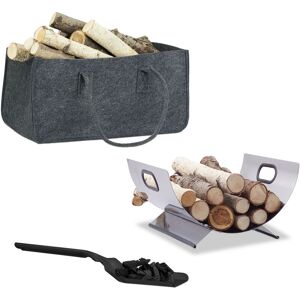 There is nothing better than enjoying a cosy fire during cold winter nights. Store your logs directly by the oven or fireplace to always have a reserve in reach. With tongs and poker, you can ensure that the fire lasts as long as possible. Thanks to the shovel and broom, you can clean up afterwards without any difficulty. The 4-piece companion tool set can be hung directly from the rack to keep it neatly stored and in reach. Firewood Rack with Tools Details - Total size H x W x D: app. 73 x 46 x 30 cm - Weight:app. 8.7 kg - Capacity: app. 36 kg - Material: Steel, plastic - Colour: Black Log Shelf with Companion Tools - Bottom shelf: app. 29.5 x 35.5 cm - Top shelf W x D: app. 30 x 36 cm - Distance between shelves: app. 29 cm - Tool length: app. 62 cm - Broom bristle length: app. 8 cm Modern Firewood Stand with Accessories - Shelf with shovel, broom, tongs and steel poker - 2 Tiers for decorative log storage - With tools for keeping it clean - Long enough for sufficient distance to the
