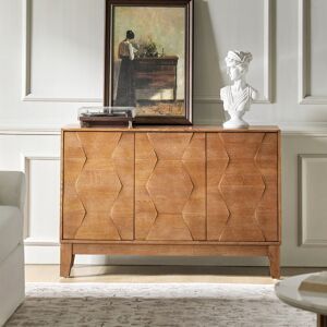 Introduce stylish storage solutions to your space with this 3-door storage cabinet. Designed with contemporary flair, this sideboard seamlessly combines functionality and aesthetics. The 3 push-to-open doors open to unveil ample storage space, and the adjustable shelf inside ensures the effortless organization of your belongings. Constructed from kiln-dried solid and engineered wood, it stands gracefully on adjustable tapered legs. We especially admire the subtle visual texture added by the hexagonal embellishments on the front panels. Whether placed in the dining area, living room, or hallway, this versatile 3-door sideboard brings a perfect blend of practicality and charm to your home decor. George Oliver Colour: Brown