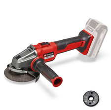 The Einhell cordless angle grinder TC-AG 18/115 Li is low in weight, making it the lightest and therefore easiest to handle angle grinder in its class. For powerful cutting, sanding or polishing, with its idle speed of 8,500 revs per minute the angle grinder is designed for high performance, so it is a welcome helper in the home workshop and hobby room. The tool is a member of the popular Power X-Change family: the rechargeable batteries of the high-performance series of lithium-ion systems can be used in all other devices from the PXC series. A softstart function and restart safeguard provide even more safety for the user, while the overload cut-out contributes to a long service life. For very smooth operation, the motor and gearing are separated. By modifying the air guidance, the cooling of the tool has been improved and its service life further increased. The gear housing is made of robust and at the same time light aluminium, and the design is streamlined. Featuring an ergonomic