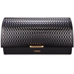 Tidily store your baked produce away within the durable structure of this bread bin. Supporting a rolltop lid to grant access to the contents inside, the quality stainless steel material features a black coated V shaped texturing to the roll top lid to add a splash of style across your kitchen side. The large capacity provides plenty of storage space to easily fit a variety of sized loaves, bagels, crumpets and muffins, complete with ventilation holes across the main body so your perishables remain fresher for a longer period of time. The durable metal design is also easy to clean, requiring just a simple wipe down with a damp cloth to maintain. This bread bin forms part of a wider empire kitchen collection which includes a range of essential kitchen and other domestic products, featuring canisters and a mug tree and towel pole set.