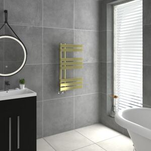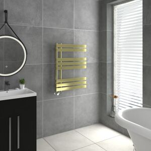 Warmehaus 1600x600mm Flat D Shape Brushed Brass Designer Heated Towel Rail Step into the modern day with a sleek, minimalist towel radiator. It's design brings a touch of class to your bathroom. Its stunning finish effortlessly blends into both modern and contemporary spaces. The designer towel radiator provides a fantastic high heat output. Allowing it to provide both room heat and keep your towels toasty warm. Features and Benefits: -Stylish rail D shape towel radiator -Number of bars: 15(3+3+3+3+3) -Durable high quality brushed brass finish -Reversible -Cross Tube Size: 50x30mm -Connects to your central heating system like a normal radiator or convert to dual fuel for warm towels all year round. -10 year 'Fit and Forget' guarantee(applies only to water leaks) Included -Fixing pack included complete with plugs and vents -Pressure tested to 10 bar, maximum working pressure 7 bar -Manufactured to BS EN 442 -Heat output 2234 BTU Notice: We suggest you ask a qualified plumber to install