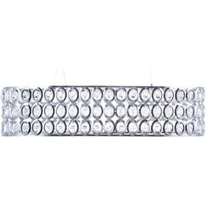 Glamour Ceiling Light. Bring some glitz and splendour to your living quarters with this bright, ambient table lamp. Featuring a shade constructed of metal rings and crystal droplets, this fixture will surely draw attention. This dazzling lighting will fit well with glamour inspired settings, but it can as well bring a touch of luxury to any modern design interior. Details: Product Type: Pendant Light Style: Glam General Color: Silver Material Type: Glass Main Material: Iron Additional Material: Acrylic Shade Material: Metal Wattage: 28 W Finish: Chromed IP Protection Code: IP 20 Light Bulbs Required: 4 Voltage rating: 230 V (50 Hz) Dimensions: Cord Length: 160 cm Depth: 29 cm Width: 93 cm Height: 133 cm Weight: 5 kg Offer Includes: 1 x Ceiling Lamp, Not Included: Light Bulb Key Features: Classic Design, Chic Look, Decorative Yet Functional, High-Quality Materials, Safe and Stable Mounting Assembly Information: Requires Installation. 5-15 min. Additional Information: The lamp is meant
