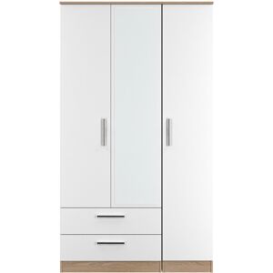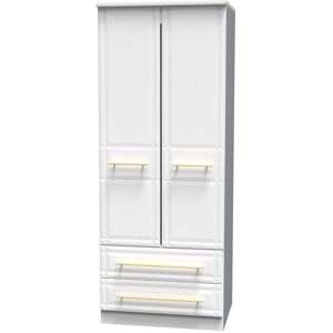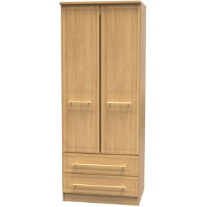 This full height double door wardrobe is perfect for any bedroom. Features the added practicality of 2 full width drawers. The Kent range uses traditional edge finishes and wood effect tops, to create a range of classic looking furniture pieces. Contrasting finishes create the tonal variations seen here with brushed steel handle mounted on wood grained fronts. All our furniture is made in the United Kingdom, to the highest quality. Welcome Furniture Finish: Kashmir/Oak