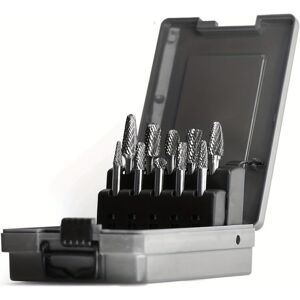 [DOUBLE-CUT DESIGN]Manufactured with cuts made on the left and right spirals, this design produces a finer on material and Processing good on Wood, Steel,Carbon Steel , Stainless Steel,Cast Iron, copper, marble, Ceramics and other non-metal [WIDELY APPLICATION]Used for deburring, finishing, shaping and enlarging holes, removing welds, cleaning and smoothing castings. Widely used for wood metal drilling,engraving,carving Very , aggressive, tough, well-balanced and , perfect for tight spaces than grinding discs flap wheel. [Comfortable, ease of control]working with reduced vibrations and less noise. Very clean cut with minimal effort. Colour:Black&Silver Material:Plastic + Steel Package Contents: 1 x 1/4 Carbide Burr Kit Only the above package content, other products are not included. Note: Light reflection and different displays may cause the color of the item in the picture a little different from the real thing. The measurement allowed error is +/- 1-3cm.