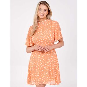This cute print beauty is ideal for an effortless look in coming summer season! High neck, angel sleeves and flare shape is perfect gem for coming hot evenings. Match with classy strappy sandals to glam up your outfit. Construction: 100% Polyester. Machine Washable. Approx. Length: 85 cm