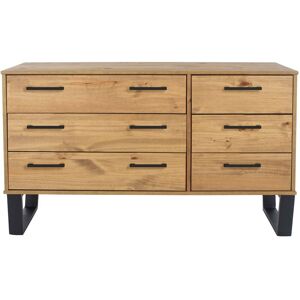 Our stunning 3+3 drawer chest adds an elegant touch to the bedroom, this natural pine piece with knotting detail, modern handles and on-trend hairpin legs is a beautiful addition to any bedroom style. This chest of drawers can also be put in the living room or kitchen to be used to add extra storage and be a delightful addition to the home. Home Source Industrial Wood Chest 6 Drawers Cabinet Organiser Bedroom Storage in Grey