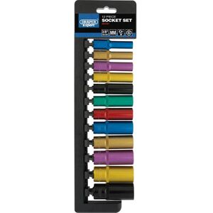 Expert Quality, Multi - Drive® socket manufactured from chrome vanadium steel hardened and tempered with a micro satin finish. Each socket has a knurled ring for extra grip. Draper Expert Multi - Drive® socket allow them to be used with metric and imperial hexagon, bi - hexagon, spline and Draper TX - STAR fixings. Packed on a plastic hanging rail that can also be used to store the socket in a tool box. Manufactured and tested generally in accordance with DIN3122 and ISO3315 Specifications Features and Benefits • Expert Quality • Contents: 8-19mm • Chrome vanadium steel hardened, tempered, chrome plated with knurled ring for extra grip • Packed on a plastic hanging rail that can be used to store the sockets in a tool box Contents 12 x socket: 8, 9, 10, 11, 12, 13, 14, 15, 16, 17, 18, 19mm