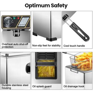 Description: Temperature control: From 60°C to 200°C, you will find the ideal temperature to cook the food to the desired crispness. The built-in viewing window allows you to pay close attention to your food so that you can cook them to perfection Compact : Due to its compact size and portability, this deep fryer is very suitable for home use. The heat-resistant handle ensures that the product is safe to move, and there is a built-in hole for plugs and wires to insert, which means there will be no stray wires around your kitchen or cabinet Safety matters: This product has a built-in handle, which can move the item safely and easily. The non-slip feet ensure that the product remains stable during use, and the detachable basket means that food can be put down and taken out of the hot oil safely and easily-this basket function also makes cleaning easier than ever Size: 42.5*30*28.5cm/ Power: 2000W Color: silver Material: metal Temperature range: 60°C-200°C (140°F-392°F) Handle length: