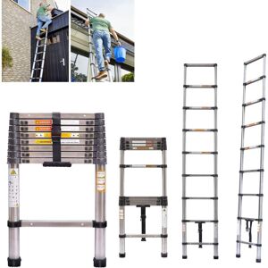 Specification:: Max loading capacity: 150KG 1.5 mm Thick-ness A-shape Length: 190cm + 190cm Net Weight: 13.5 KG 3.8 m when fully extended Folded Height 83 cm = 0.83m tall when collapsed Number of steps: 12 Spacing Between Rungs 30cm About this item Light weight aluminium design �� 150kg load-bearing capacity �� Rubber-tipped feet ��storage straps The ladder can extends to whatever height you want - right up to a dizzying 380cm. Closed Length: 83cm, Weight:Approx.13.5KG - easy to carry or store the ladder anywhere Also comes with safety certification, featuring industrial-grade latches and solid rubber-tipped feet. Included: 1 x Folding Telescopic Ladder