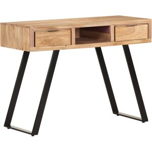 This wooden desk exudes a industrial charm and will make a timeless addition to your home. The computer table is made of solid acacia wood, a hardwood with dense grains, making it stable and durable. The steel frame also adds extra stability. The wooden desk has two drawers and a compartment, providing ample space for storing small items such as keys, notebook, and other knick-knacks. The office desk can also be used as a writing desk or console table. Important note: Colours and grains may vary from piece to piece, making each piece unique. The delivery is random, ensuring the exclusivity and individuality of your product. Material: Solid acacia wood with a natural finish, steel with black finish Dimensions: 107 x 45 x 79 cm (L x W x H) Assembly required: Yes SKU: 323523 EU responsible party Haba Trading B.V. Mary Kingsleystraat 1 5928SK Venlo The Netherlands Compliance-safety@vidaxl.com