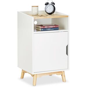 This compact white nightstand is an ideal match for your cosy bed. You can use its tray to put down your glasses, tissues or for having your smartphone close by. It offers more than enough space for a small reading lamp, a radio or the much-dreaded alarm clock. You can use the open compartment to store your bedtime reading. The large compartment with door offers plenty of space for pyjamas or blankets. Four sturdy pinewood legs ensure that this cupboard stand secure. The tray is made of lovely natural wood and therefore especially robust. The bevelled edge is especially handy if you intent to store earrings and other smaller items on top. White Nightstand Details • Total H x W x D: app. 74 x 43 x 40 cm • Tray: W x D app. 40 x 38 cm • Open compartment: H x W x D: app. 13 x 40 x 38 cm • Compartment with door (internal): H x W x D: app. 40 x 38 x 36 cm • Length of legs: app. 12 cm • Maximum height of rim: app. 4 cm • Colour: White, natural • Weight: app. 14 kg • Material: MDF frame,