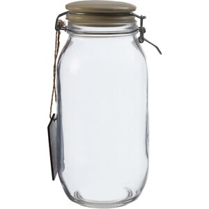 The round pine wood lid has a rubber seal that keeps the jar airtight, helping to keep its contents fresh. The metal clip lock has a reflective silver finish and adds a touch of retro charm to the design. Write out its contents on the black slate in the lid.