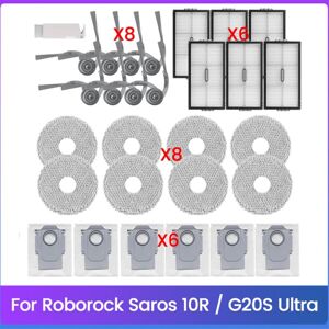 COMPLETE SET: Comprehensive replacement kit includes 8 side brushes, 8 mopping cloths, 6 dust bags, 6 HEPA filters, 1 cleaning tool COMPATIBILITY: Specifically designed for Saros 10R robot vacuum models, ensuring perfect fit and optimal performance EXTENDED USE: Multiple replacement components allow for months of continuous cleaning without needing to reorder supplies EASY INSTALLATION: Quick-release mechanisms and intuitive design make replacing worn components simple and hassle-free PERFORMANCE MAINTENANCE: Regular replacement of these parts helps maintain strong suction power and effective cleaning results Compatible with model:For Saros 10R / G20S Ultra The colour of the product appearance has a slight chromatic aberration does not affect the use. Colour:As Shown Material:plastic Package Contents: 6 x Dust Bags 8 x Mop Cloths 6 x Filters 8 x Side Brushes 1 x Cleaning Brush Only the above package content, other products are not included. Note: Light reflection and different