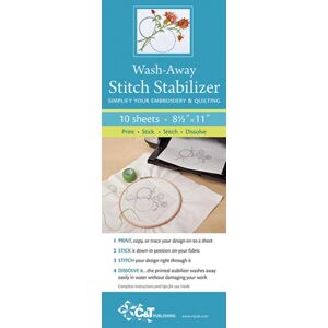 Make fabric marking a thing of the past with these special water-soluble, adhesive-backed sheets.Once your design is printed on the sheet, you can position (or reposition) it right where you want it for sewing through—perfect for embroidery, machine quilting, crazy quilting, appliqué, and more.It protects delicate fabrics, supports dense embroidery patterns, and stabilizes “hard to hoop” pieces like cuffs and collars.Complete instructions and tips for use included. Print, copy, or trace your design on to a sheetStick it down in position on your fabric and stitch right through it (Then just wash it away…the printed paper dissolves easily in water without damaging your work)Pack of 10 sheets.