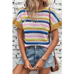 Multicolor pattern Crew neck design Trimmed ruffle sleeves Knitted texture Warm and comfortable Fashionable and feminine Perfect for colder seasons Diverse options available in our dropship sweaters collection See size chart for perfect fit Material: 100% Viscose