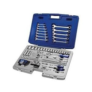Expert by Facom: 1/4"-1/2" Socket Set 101P C - E032911 1/2 hex sockets: 8-9-10-11-12-13-14-15-16-17-18-19-20-21-22-23-24-25-26-27-28-29-30-32 mm. 1/2 deep hex sockets: 12-13-14-15-16-17-18-19-21-22-24 mm. 2 1/2 extensions 130-250 mm. 1 1/2 sliding T-handle. 1 1/2 universal joint. 1 1/2 to 3/8' adapter. 1 3/8 to 1/2 adapter. 1 1/2 locking meter ratchet. Supplied in socket set case - also converts into a modular storage system for use in roller cabinets. MPN: E032911 EAN: 1/4"-1/2" Socket Set 101P C - E032911 Attributes: Drive Size: 1/2in 1/4in Drive Type: Square Number of Pieces: 101 Set Type: Socket Set