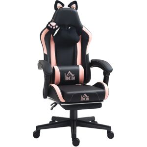 Focused on the game, in cat style with this HOMCOM gaming chair with footrest. It's decorated with cat ears and paw for a cute look. The medium-density foam padding keeps you comfortable, with a high back and armrests for support. Adjust seat height between 44-52cm to game at a position for you. Enjoy the freedom to recline up to 135°, complete with the retractable footrest to elevate the lower body. Specifications: ● Colour: Black, Pink ● Materials: Faux Leather, Sponge ● Overall Dimensions: (without ears) 65W x 62D x 116-124Hcm ● Reclining Dimensions: 127L x 65W x 96-104Hcm ● Seat Size: 40W x 50D x 44-52Hcm ● Armrest Height (to seat): 21cm ● Backrest Size: 75L x 53Wcm ● Lumbar Support Size: 29L x 19W x 7Dcm ● Headrest Size: 28L x 15W x 6Dcm ● Footrest Size: 34L x 21W x 5Dcm ● Weight Capacity: 120kg ● Item Label: 921-794V70BK Features: ● Cat ears and paw add a cute and fun touch ● Medium-density foam padding for comfort, with smooth, easy-clean faux leather upholstery ● 135°