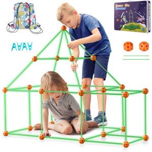 Features & Details Safe Materials: Our fort building kit prioritizes natural materials for children's security. The connecting rods and balls are BPA-free, with smooth edges and a comfortable grip that enhances motor skills. They come in vibrant colors to stimulate cognitive development. 140-Piece Fort Building Kit: Explore endless possibilities with our kids fort building kit! It includes 44 solid balls and 96 lightweight yet durable connecting rods. Perfect for kids aged 4 and up to create their own 3D spaces—build forts, tents, pyramids, rockets, and more with parental guidance. Cool Glow Feature: No batteries or charging needed! Combining environmental friendliness with fun, our fort builder kit glows in the dark after charging under light. The longer it absorbs light, the brighter and longer it glows—a magical experience for kids. Easy to Assemble: Our fort kit features oval-shaped connecting rods for flexible and secure assembly. It includes a simple assembly manual for kids to