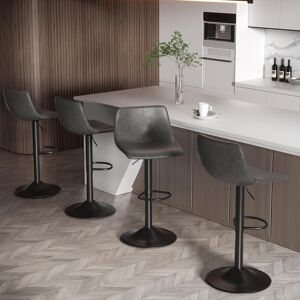Bar stools with backrest and footrest, the stylish and contractual design makes these bar stools eye-catching enough. High-quality polyurethane (PU) leather-wrapped seat with high-density foam for comfortable seating. The adjustable height makes them adaptable to various environments and the large base ensures their safety. Aivermeil Colour: Dark Grey Faux Lather/ Black Frame