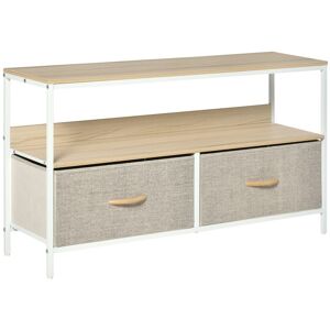- Great mixed with other furniture in your living spaces - Natural wood effect complements the feature rattan panel on drawer - Features two drawers, bottom shelf and an open table top - plenty of storage and display room - Anti-tipping straps so it doesn't fall over - Small stump feet with anti-slip pads to protect your floor - Made from MDF, it is durable and the smooth surface wipes clean easily - Maximum load 40kg, assembly required