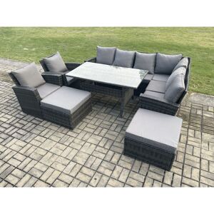 This patio corner sofa set can be used both indoors and Outdoor,with high quality PE rattan and durable galvanized steel construction for sturdiness and long lasting. Outdoor garden furniture can also be placed on the patio or balcony,The design of this rattan furniture is a perfect blend of country chic and modern minimalism, adding an elegant touch to your house. Set Dimensions: • 2 x Big footstool :65L x 65W x 34H cm • 2 x Chair: 74W x 69D x 79H cm • 1 x 3 seater sofa with two arm : 170L x 69D x 79H cm • 1 x 3 seater sofa with single arm: 160L x 69D x 79H cm • 1x Dining Table Dimension: 140 L x 80 W x70 H cm (Transparent tempered glass ) Dark grey mixed rattan with dark grey fabric .Color may some difference due to light or monitor .we are unable to return the item due to color problem . Items Comes Flat Packed And Easy Assemble,Sturdy Galvanized Steel Tube Metal Frames With Powder Coating To Prevent The Rust Flat PE Rattan Completely Made By Hand, 5mm Thickness transparent